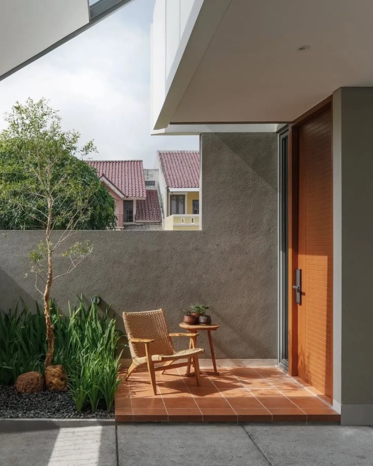 Warna keramik lantai teras yang bagus berikutnya, yaitu warna merah bata (terracotta). Warna keramik ini dapat memberikan kesan hangat dan homey . Warna terracotta ini juga akan berpadu sempurna dengan taman kecil di sebelahnya, menciptakan nuansa alam yang kental di area depan rumah. Ini termasuk warna keramik lantai yang timeless dan bisa dipadukan dengan berbagai gaya interior, terutama gaya interior mediterania, tropis, traditional, atau rustic.