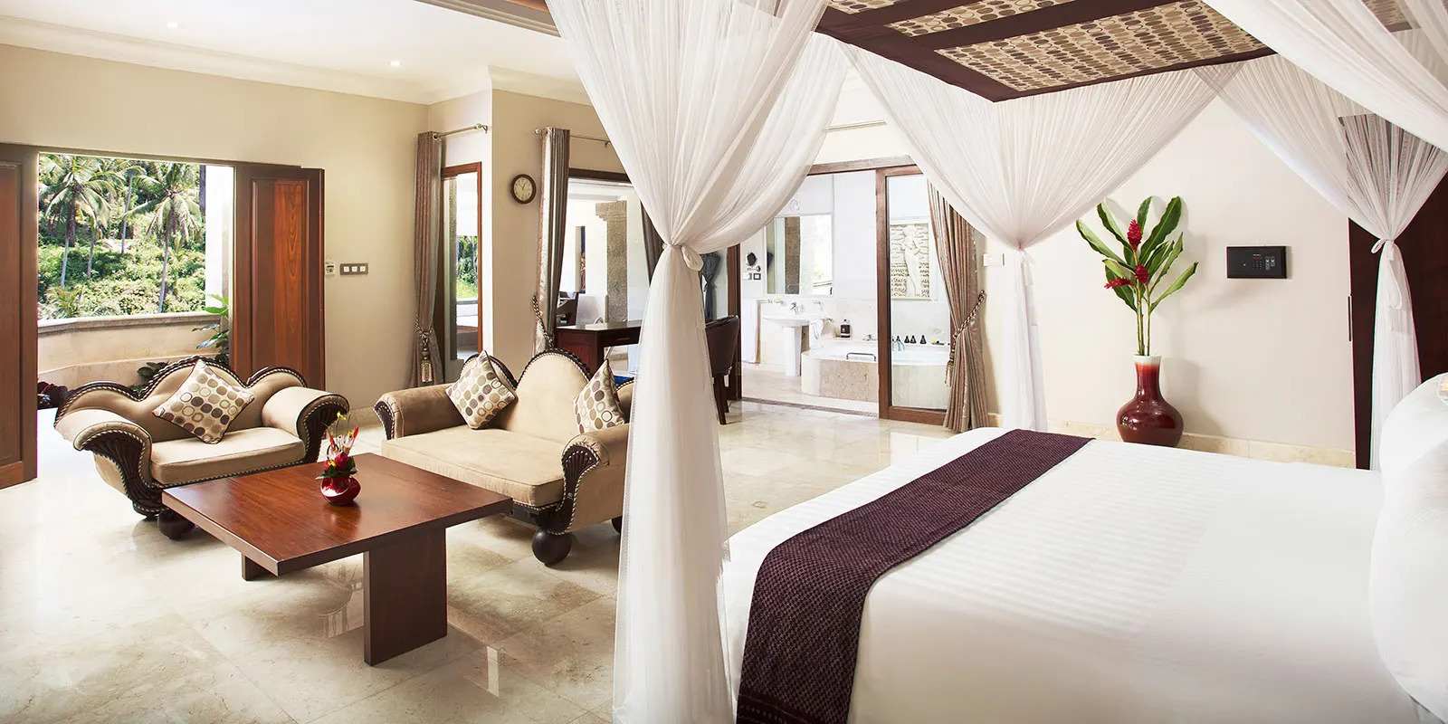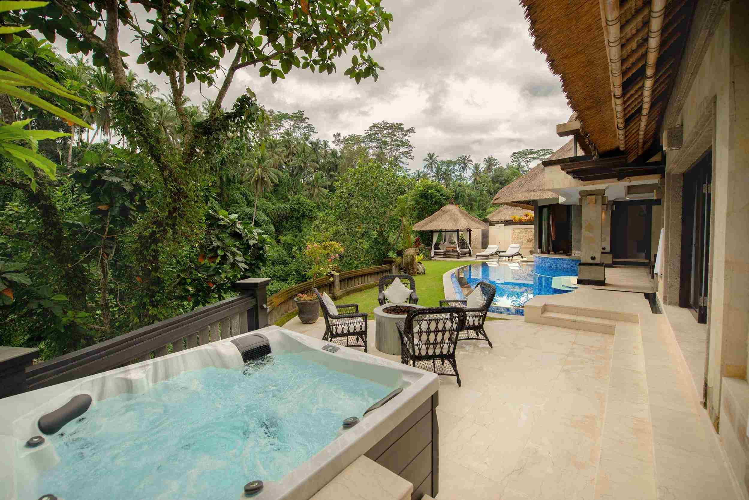 Vila dengan ukuran seluas 240 meter persegi, satu kamar tidur, dan kolam renang pribadi merupakan pilihan menginap yang eksklusif sangat cocok untuk pasangan yang mencari pengalaman bulan madu di Ubud. Memiliki area dek luar dengan atap yang menyuguhkan suasana tenang dari suara aliran sungai di bawahnya. Vila ini memadukan rancangan arsitektur tradisional Bali dan modern dengan kamar mandi terbuka dilapisi marmer serta dihiasi ukiran gajah yang terlihat mewah.